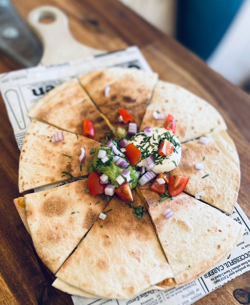 Wheat tortilla, mozza, cheddar, guacamole, lemon cream, pico de gallo