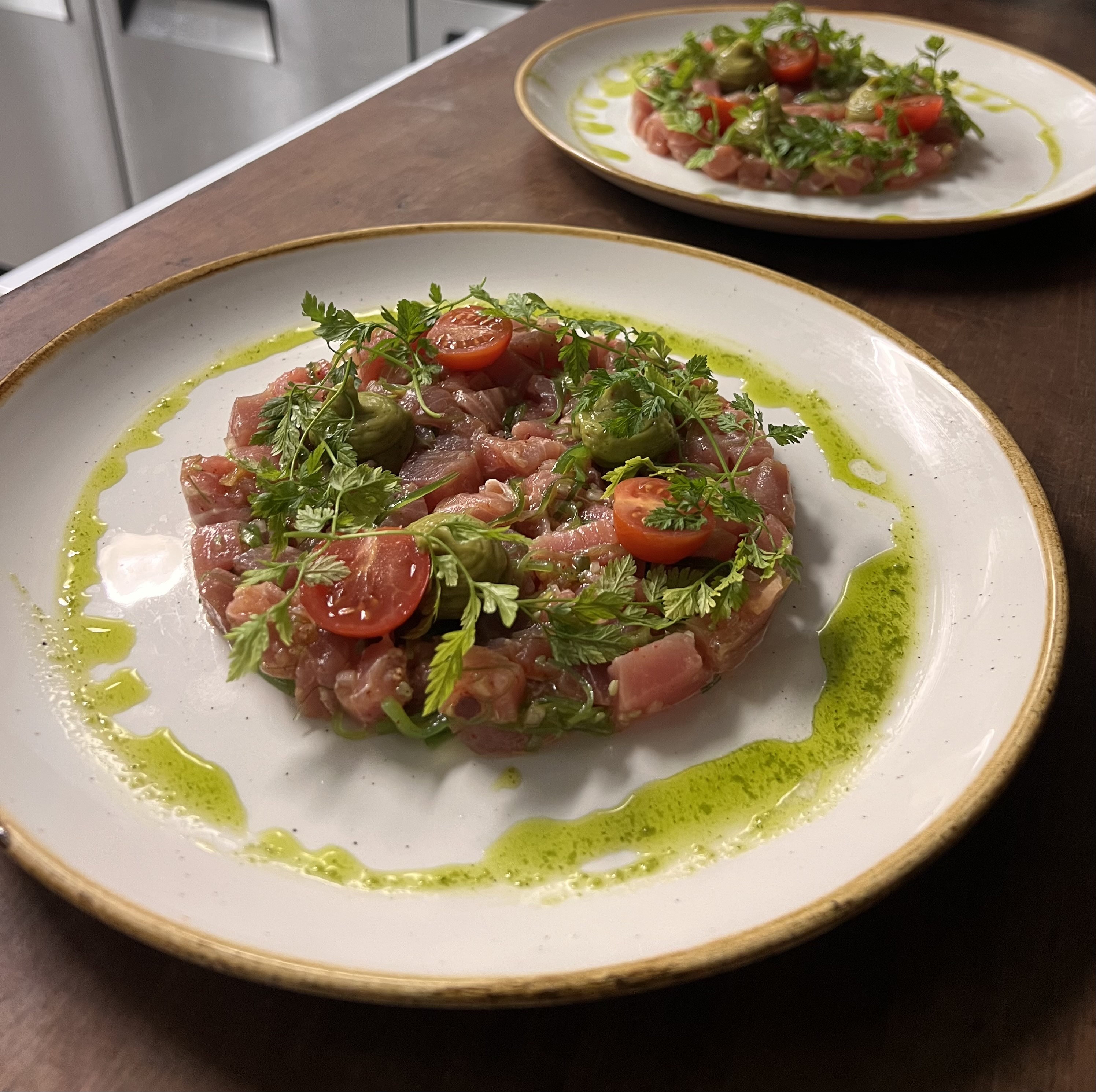 Crispy Thai-style tuna, julienne vegeta…